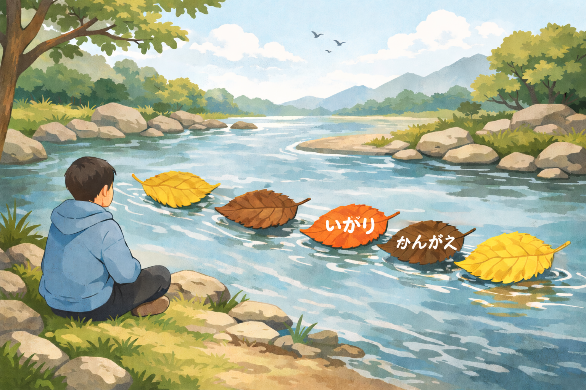 思考を葉っぱに乗せて流す。自分は川のほとりで葉っぱを目撃する者だ。